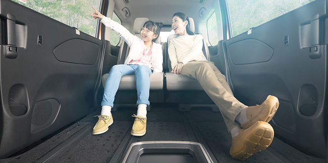 2列目シートは、最大690mmのロングスライド量を持っているので、大人が足を伸ばして座ることが可能です。